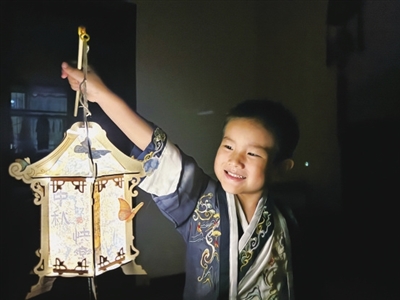 2023年的中秋,5歲的秦梓辰收獲了很多驚喜:幼兒園老師帶著他做花燈,媽媽給他網購了一身漢服,爸爸帶著他登高賞月。幼小的他,感覺“月很圓,愛很滿。”