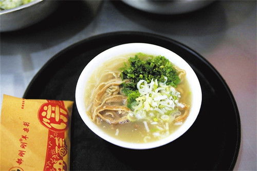 醇香美味的湯中,筷勺起落間,鮮嫩的羊雜和爽口的粉條,觸動著每位食客的味蕾。撒一把蔥花、香菜,淋一點紅紅的辣椒油,色香味俱全。湯色純正、味道醇香,一碗下肚,那叫一個舒坦。