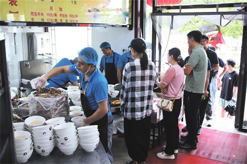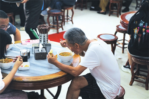 “就好這一口,還是那個味兒,一碗下肚,好舒坦!”近日,一位上海游客王先生帶著家人來到店里,回味特色美食,追憶當年情懷。