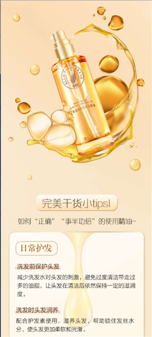 干性發質可以適當增加護發精油的使用量和使用頻率。除了日常的洗發前后使用,還可以在感到頭發干燥的時候隨時補充。