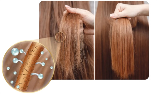同時(shí)平滑頭發(fā)表面毛鱗片、減少摩擦,有助于修復(fù)頭發(fā)毛鱗片和內(nèi)部損傷。