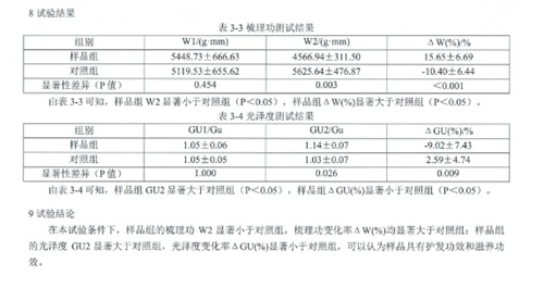 目前,該護(hù)發(fā)精油已通過(guò)多項(xiàng)功效測(cè)試,經(jīng)實(shí)驗(yàn)室驗(yàn)證具有多種護(hù)發(fā)功效:
