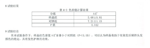 試驗(yàn)發(fā)現(xiàn),相對(duì)于樣品組,使用護(hù)發(fā)精油處理過(guò)的對(duì)照組色差的數(shù)值較少,染發(fā)后頭發(fā)的顏色保持更穩(wěn)定,表明該護(hù)發(fā)精油有護(hù)色功效。