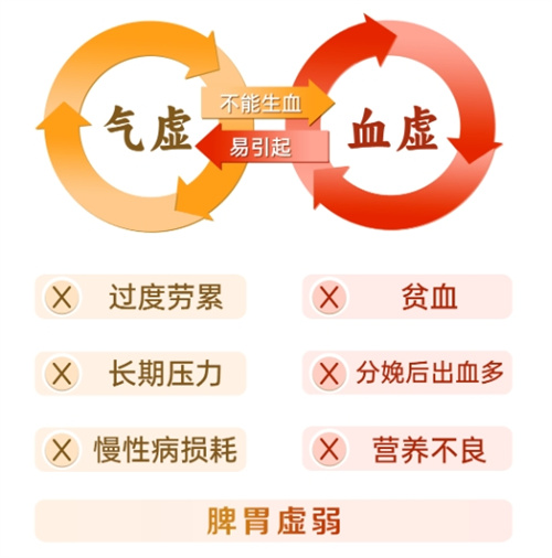 脾胃是氣血生成的源泉,脾胃功能不足導致氣血不足;
