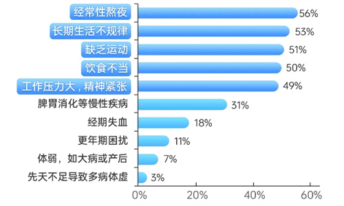 而來自《中國氣血健康白皮書》的調研數據顯示:生活習慣、飲食和運動也是影響氣血的重要因素[1]。