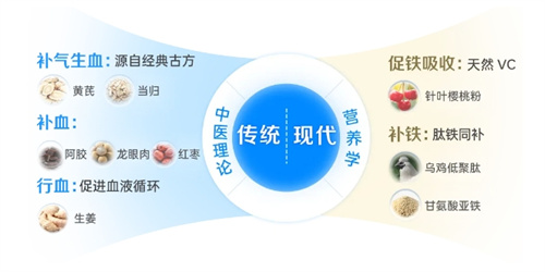 完美補氣血組方設計將傳統中醫理論的生血、補血、行血與現代營養學的補鐵、促鐵吸收相結合,更全面地實現氣血雙補。