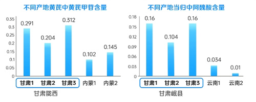 此外,藥材產地對其功效指標有非常大的影響,完美遴選來自“中國黃芪之鄉”甘肅隴西的黃芪、有“岷縣當歸甲中華”美稱的甘肅岷縣的當歸,并對黃芪標志性成分黃芪甲苷含量、當歸標志性成分阿魏酸含量進行質量監控,確保原料質量,以更好地發揮健康效益。