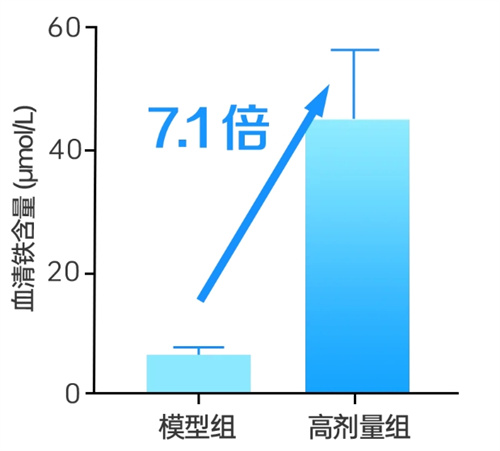 實驗結果顯示:相比模型組,樣品組的血清鐵含量得到顯著提高,高劑量組血清鐵含量達到模型組的7.1倍。同時,樣品組還降低了總鐵結合力,改善鐵代謝。