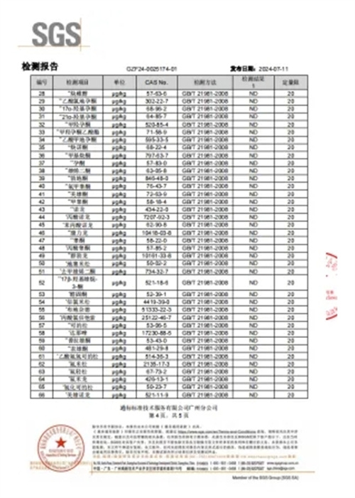 經第三方檢測機構檢測,該組方在18項雄激素、7項雌激素、9項孕激素、16項皮質醇激素共50項激素結果上均未檢出,確保了組方的健康安全。