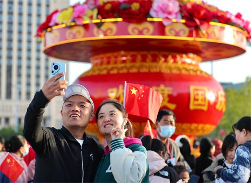 10月1日清晨,太原五一廣場,國慶日升國旗儀式隆重舉行。數(shù)萬名市民群眾和各地游客滿懷愛國情,觀禮升旗儀式,同慶中華人民共和國成立75周年。