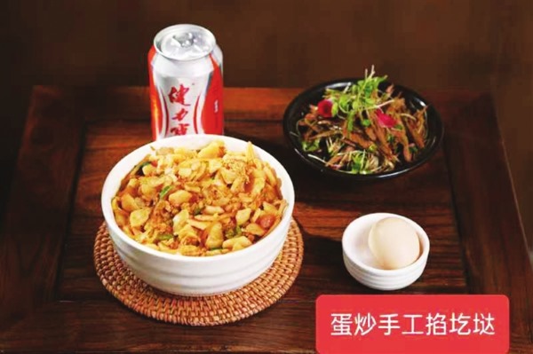 除了經(jīng)典的平遙菜,得風酒館還以其招牌菜“掐圪垯”聞名。這道面食承載著平遙的傳統(tǒng)文化,同時也經(jīng)過了現(xiàn)代化改良,既保留了傳統(tǒng)面食的筋道,又融合了少油少鹽的健康理念,深受老顧客的喜愛。李先生一家每次來都不會錯過這道招牌菜,“掐圪垯鹵汁濃郁,健康又好吃,我們家老人小孩都愛吃。”