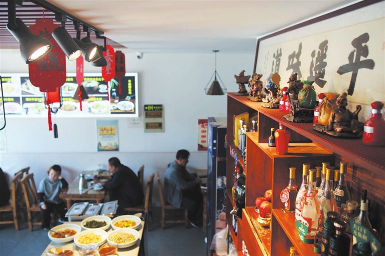 邢海平既是老板又是廚師,每天忙忙碌碌卻甘之如飴,倍感欣慰。一碗碗的平遙碗托被爆炒出鍋,無數(shù)掐圪垯從面案跳入沸騰開水中……這傳自家鄉(xiāng)的老味兒,如今又帶著時間的沉積,給天南海北的人們,送去味蕾上的享受。“就想把傳統(tǒng)老味兒做好,讓平遙美食在省城煥發(fā)生命力,讓人們記住獨具地方辨識度的‘鄉(xiāng)愁’。”說話間,一撥食客聞香而來,邢海平立馬又鉆進(jìn)了廚房直奔灶臺……