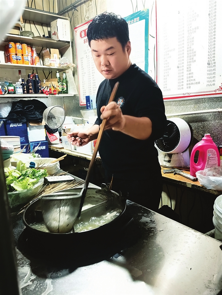 袁祖保一家子,從早上忙到中午準備。下午四五點開火,經常要營業到凌晨時分。“以前老顧客多,聽聲音就能知道是誰,”李長華回憶說,“現在新顧客多,各個年齡段的都有。”陳玲解釋道,“我公公婆婆都不看手機,這幾年經常有探店、拍視頻的,吃著吃著就開始拍照,還要拉著我們說話。”