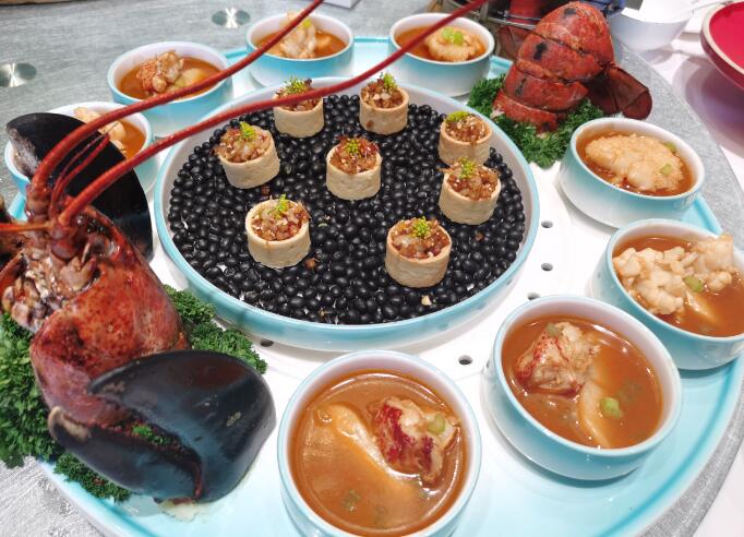 翻開菜單,“龍騰四海”和“滋補醬燒牛尾筋”是陳金培精心推出的兩道粵菜融合菜。“龍騰四海”的原料是加拿大寒冷海域的波士頓龍蝦,配上用明蝦、寧波手打年糕、新疆發酵番茄等制作的發酵番茄酸湯,再與龍蝦肉、堅果塔塔進行完美搭配,讓味蕾得到升華。“滋補醬燒牛尾筋”的原料選用新鮮的黑牛尾和干制牛蹄筋,采用春沙仁、當歸、紅棗、陳皮、黨參等十多種藥材,小火慢燉煨制而成。其口味獨特,甘香醇厚,回味無窮。