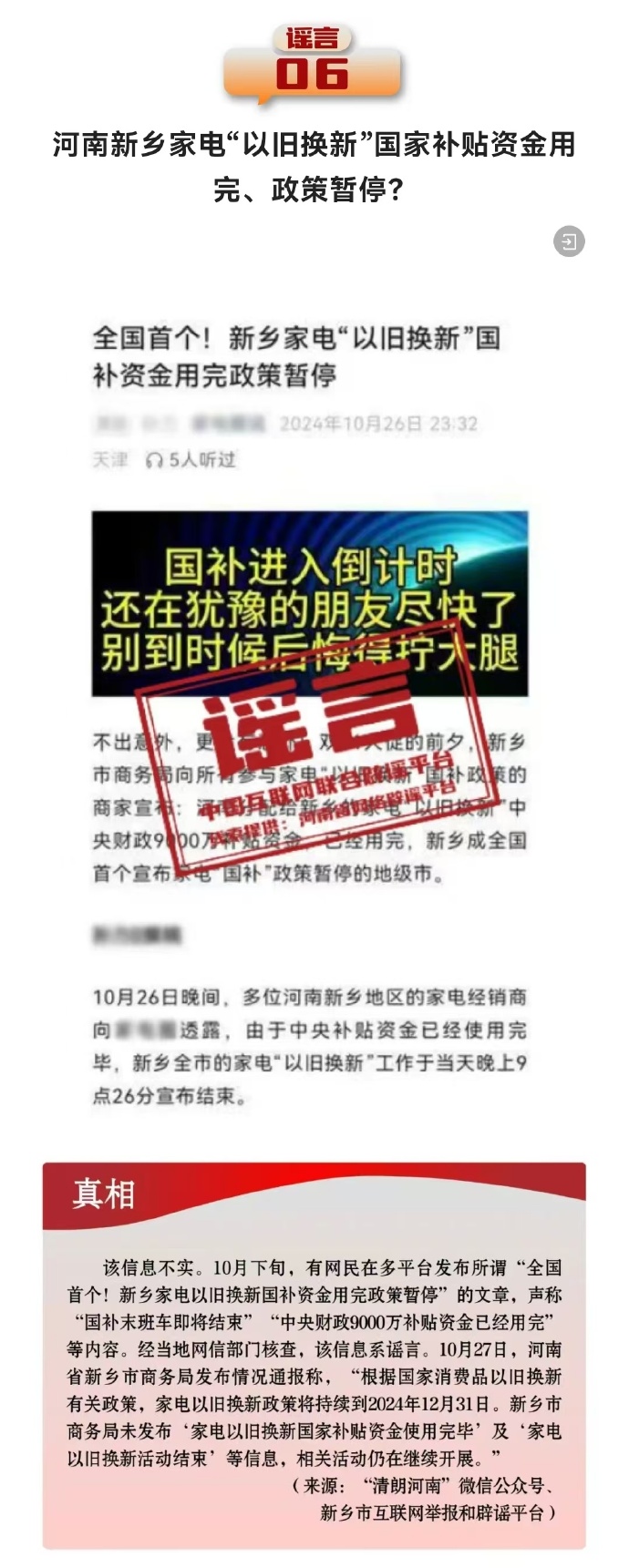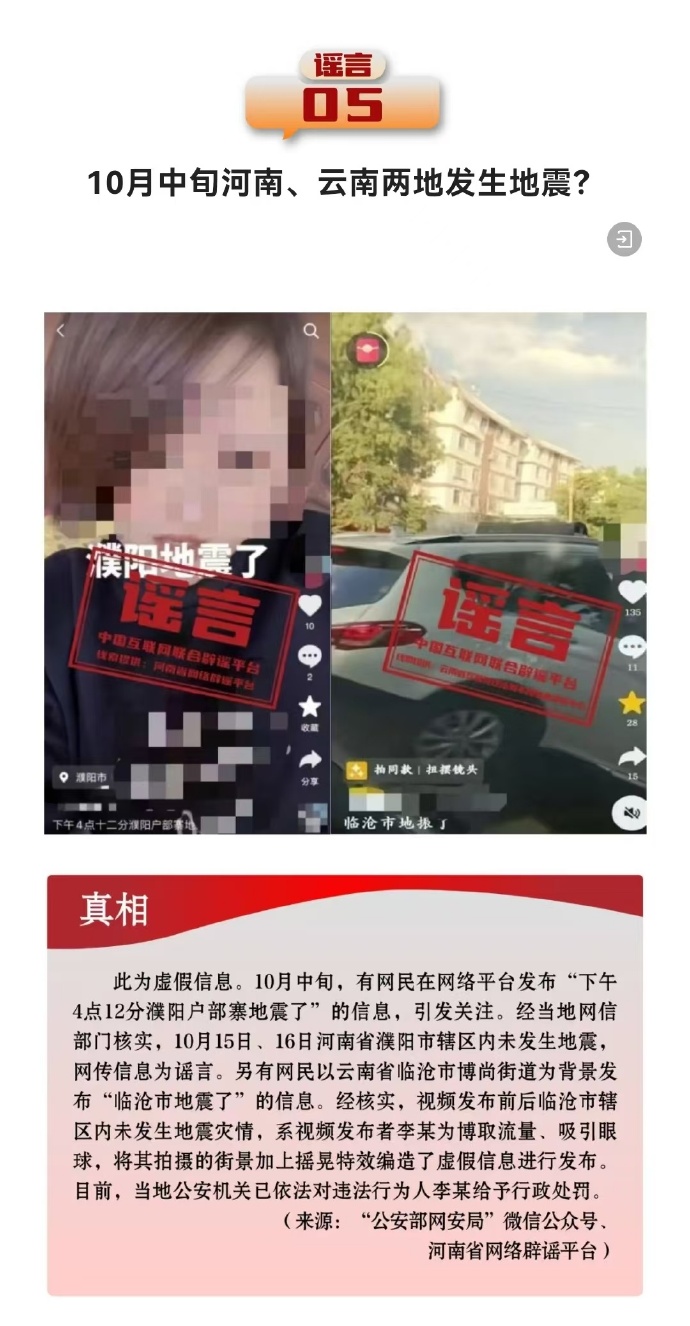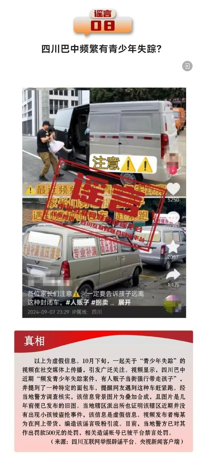 中國互聯網聯合辟謠平臺2024年10月辟謠榜