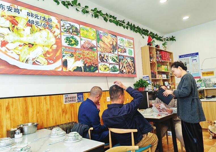 每天早7時,王正華到九州農副產品批發市場采買食材調料,“食材必須新鮮,自己一個攤一個攤地挑,一樣一樣地選,才能放心。做好口碑,才能口口相傳?!睎|安雞的食材更是講究,雞要用一公斤左右的走地雞,醋用東安米醋,花椒是東安七葉椒,辣椒是小米辣,保證原汁原味。