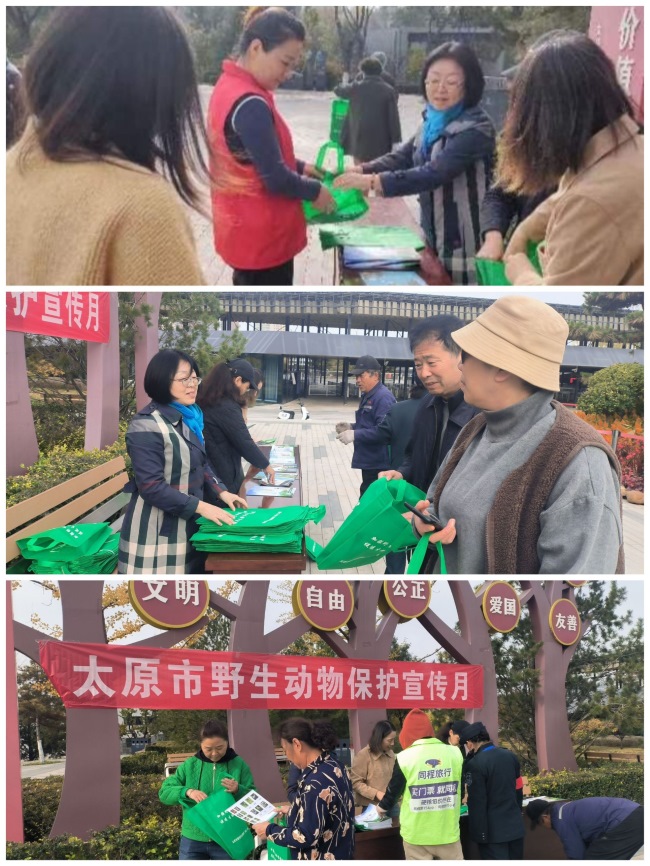 11月1日,野保科組織人員在太原動物園開展野生動物保護宣傳月科普宣傳工作,與動物園的專家一起為路過的游客解答關于野生動物的相關問題,發放宣傳資料和宣傳品。由于環境的不斷優化,越來越多的野生動物出現在城市中,需要跟市民科普用科學的方式去對待它們:不能強行捕捉、傷害,要了解它們的習性,一些正常的野生動物行動不宜過多干預等。太原市森林公園也同期開展保護月活動。