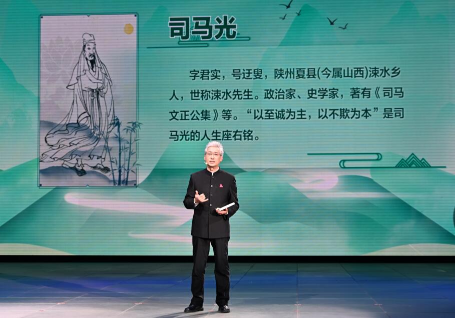 本場讀書會以“以史為鑒揚正氣”為主題,品讀《恭儉正直司馬光》《家正國興話裴氏》《民役官鑒柳宗元》《廉潔自守薛瑄》4冊書中所蘊含的廉潔思想、道德情操和歷史智慧。這4冊書中的主人公都是運城人,本場讀書會開在他們的家鄉,在短片推薦、片段誦讀、嘉賓訪談等環節的基礎上,創新表現形式,增加人民群眾喜聞樂見的朗誦、蒲劇、舞臺劇等內容,從不同角度介紹了“戒奢戒侈”司馬光、“勤政御史”柳宗元、“鐵漢公”薛瑄和“重教守訓”裴氏家族的廉潔故事。