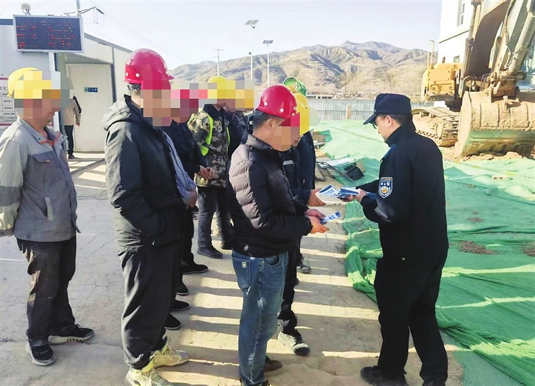 為有效遏制電信詐騙案件在建筑領域的發生,增強建筑工人的防騙意識,4月1日,婁煩縣公安局城關派出所民警走進建筑工地,開展反詐騙宣傳活動,為工友們送上反詐“安全鎖”。