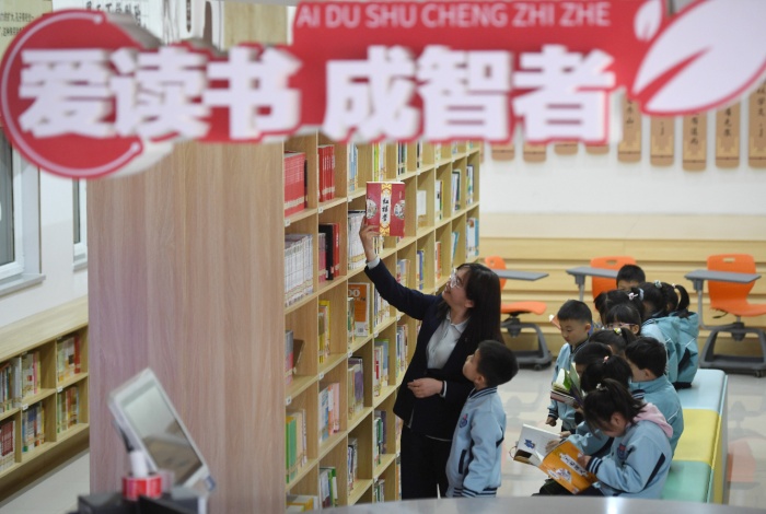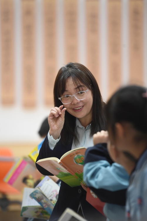 "閱讀不是任務(wù),而是打開(kāi)世界的萬(wàn)花筒。"每周五的"書(shū)房探秘日",韓櫻會(huì)精心挑選三本書(shū),設(shè)計(jì)闖關(guān)游戲。有一次,她將《山海經(jīng)》線裝本與立體繪本并置,孩子們自發(fā)組成研究小組,用黏土捏出奇珍異獸,用童謠重述上古傳說(shuō)。 課余時(shí)間,韓櫻發(fā)起“我的書(shū)架”活動(dòng),指導(dǎo)本班學(xué)生按“歷史”“童話”“科普”等分類(lèi)藏書(shū),學(xué)生們?cè)谡碇袑W(xué)會(huì)思辨,在分享中收獲成長(zhǎng),書(shū)架間穿梭著小小的身影。學(xué)生梁荔涵在韓老師指導(dǎo)下,已經(jīng)歸納藏書(shū)五百余本。 從孤本珍藏到知識(shí)分享,從個(gè)人研讀到師生共賞,韓櫻以藏書(shū)為舟,載學(xué)生駛向更遼闊的精神彼岸。牛利敏 攝