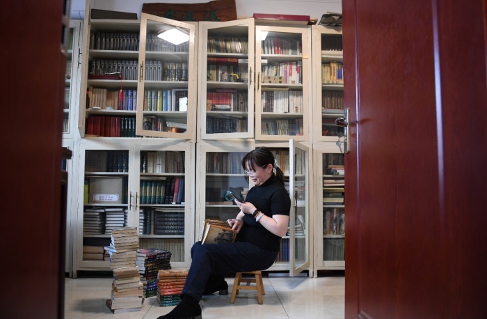 作為2023年太原市十大藏書(shū)家之一,五一路小學(xué)教師韓櫻始終將“藏書(shū)”與“育人”融合,與學(xué)生共享閱讀之樂(lè)。她以萬(wàn)余冊(cè)藏書(shū)為媒,編織出一張連接課堂與生活的知識(shí)之網(wǎng)。韓櫻在大學(xué)時(shí)期受父親影響,與兄長(zhǎng)開(kāi)啟藏書(shū)之路。書(shū)房里,國(guó)內(nèi)外文學(xué)名著比肩而立,一家四口,每人一張書(shū)桌一盞燈,其樂(lè)融融。從讀書(shū)求知到教書(shū)育人,30年間,韓櫻的藏書(shū)日漸豐富。客廳、書(shū)房、地下室,滿目皆書(shū),在手機(jī)上建立的圖書(shū)影像檔案讓書(shū)籍觸手可及。每逢節(jié)假日,全家選書(shū)購(gòu)書(shū)的傳統(tǒng)持續(xù)至今。不同時(shí)代的書(shū)籍在藏書(shū)閣中交匯,墨香飄散在家中的每個(gè)角落。從教27年,每日清晨,書(shū)聲朗朗,韓櫻帶領(lǐng)學(xué)生走進(jìn)書(shū)香世界。