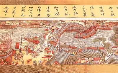 王銀鳳創作的《清明上河圖》剪紙仿古名畫(局部)。