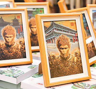王銀鳳創作的悟空主題畫框擺臺文創產品。