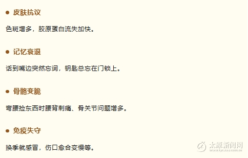 晨起梳妝時,你突然發(fā)現(xiàn)粉底遮不住顴骨上的褐斑;深夜輾轉(zhuǎn)反側(cè),數(shù)羊到天明卻越數(shù)越清醒;爬兩層樓梯就氣喘吁吁,心跳快得像要沖出胸膛……你以為衰老只是多了幾根白發(fā),添了一些斑點?其實,身體的衰老特征遠不止這些!