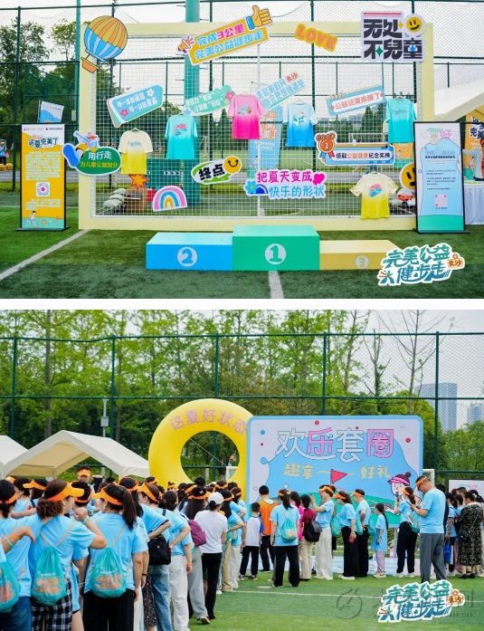除此之外,在“這夏完美了”健康科普區、“這夏活力了”趣味運動區、“這夏喚醒了”公益健身區等幾大區域,各個家庭在這里充分發揮團隊協作精神,一同獲取健康科普知識,在親子互動游戲中共享歡樂,在公益健身小課堂中收獲滿滿。更令人動容的是,在精心打造的希望工程公益兒童T恤展示區,希望小學孩子們充滿童真的畫作被一一呈現。孩子們稚嫩的筆觸間流淌著對知識的渴求、對未來的憧憬,每一幅作品都深深觸動了在場觀眾的心弦。