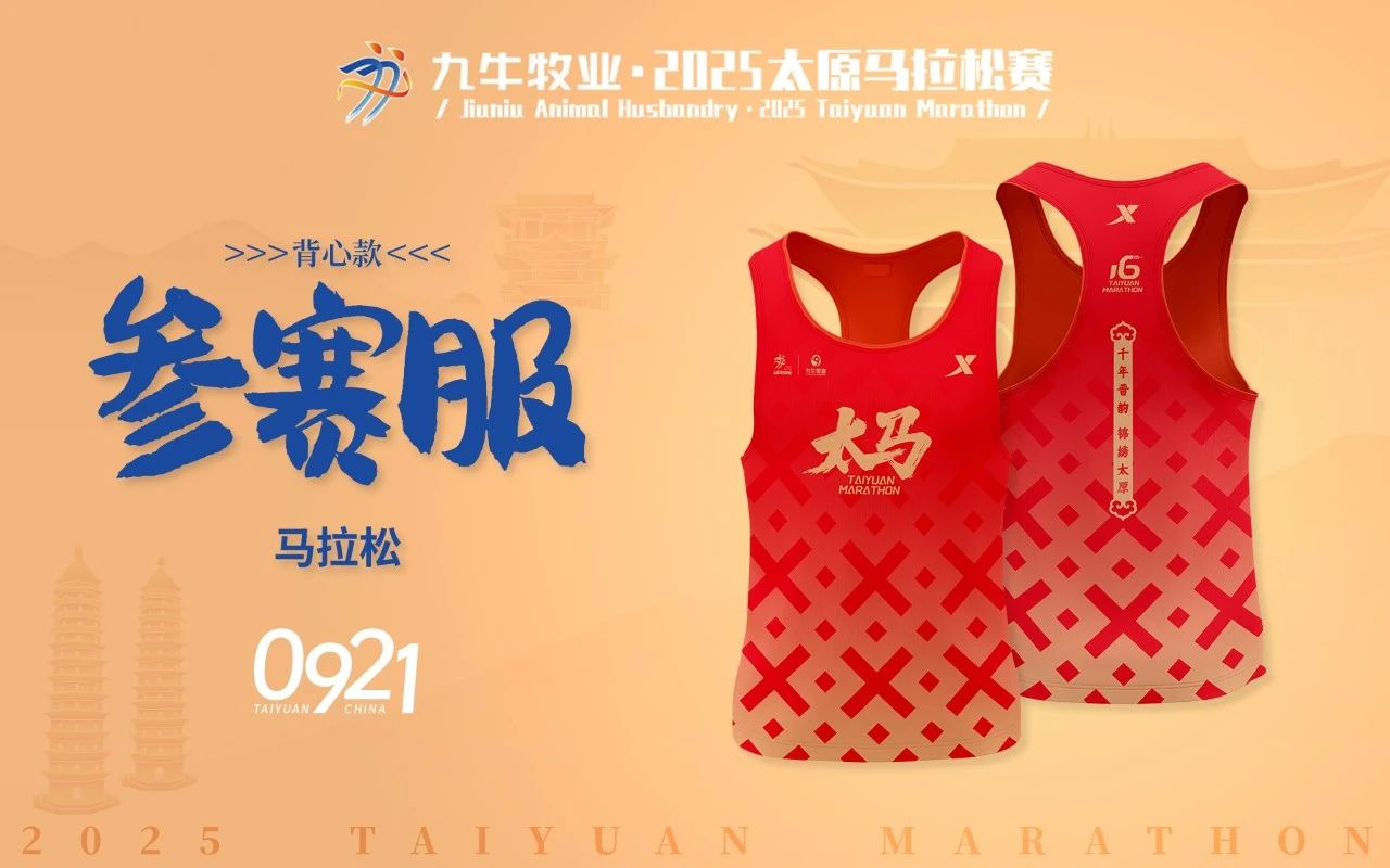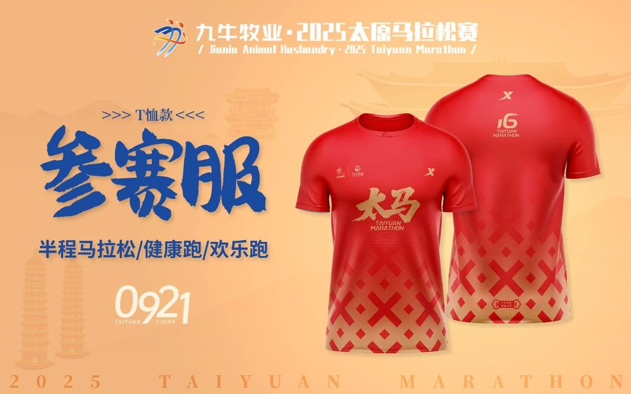 由合作伙伴特步提供的參賽服以“活力紅”為基調,代表運動員的熱情、活力、拼搏,是太原市民好客熱情,也是晉商故里傳承千年的熾熱情懷,更是太原人將平凡歲月淬煉成詩的火熱生活哲學。而蒼勁有力的毛筆字“太馬”則以“榮耀黃”作為配色,為踏上賽道的選手喝彩,稱頌敢于挑戰的馬拉松精神。