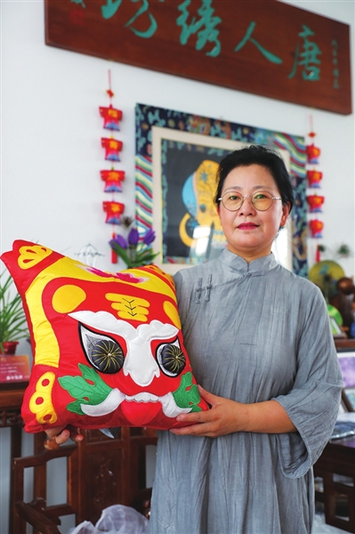 憨態可掬的虎頭抱枕、色彩濃烈的繡品擺件……8月8日,踏入位于晉源區唐城街龐家寨的“唐人繡坊文創藝術館”,仿佛置身一家迷你博物館,上百件精美繡品令人叫絕。這些繡品出自武氏家族幾代人之手,2017年10月,民間繡活(武氏繡法)入選山西省非物質文化遺產代表性項目名錄。