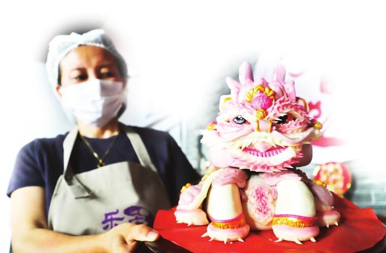 臘月還有一項(xiàng)重頭戲——為龍?zhí)鞆R廟會(huì)趕制1.8米長的盤龍面塑貢品。“龍頭要威風(fēng),龍身要流暢,龍爪要有力,”郝慶玲邊說邊比畫著,“最難的是分體蒸制后的組裝,要把蒸好的龍身段一段段接起來,特別是轉(zhuǎn)折處,稍有不慎就會(huì)露出接縫,那就前功盡棄了。”這份壓力源于對傳統(tǒng)習(xí)俗的敬畏,也凝聚著她爐火純青的技藝。