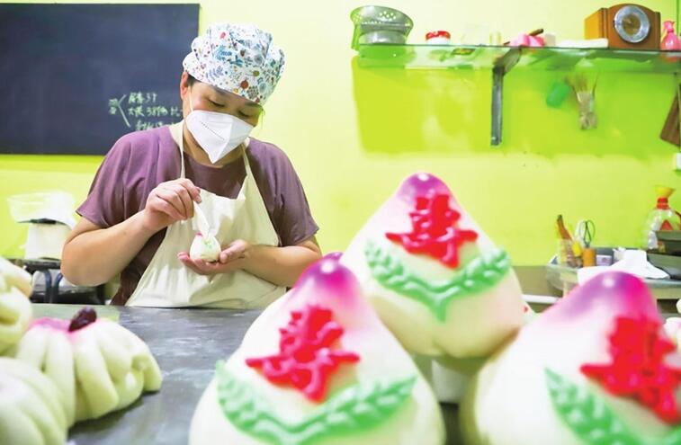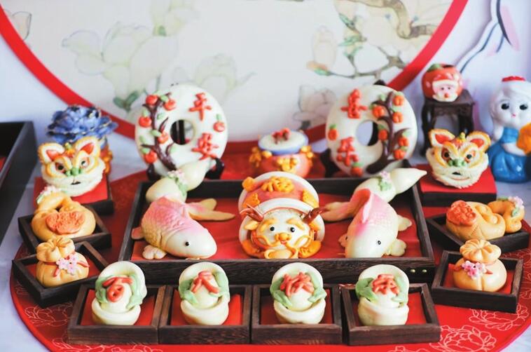 在樂慶樓花饃工坊里,蒸籠揭蓋時(shí)騰起的白霧裹挾著濃郁麥香。王小萍輕撫著剛出籠的蛇盤兔花饃,溫潤的表面泛著光澤——這是她從京派面塑大師那里學(xué)來的“水光肌”工藝。在這個(gè)去年底開張的工坊里,千年花饃技藝正在傳統(tǒng)與創(chuàng)新間尋找平衡。