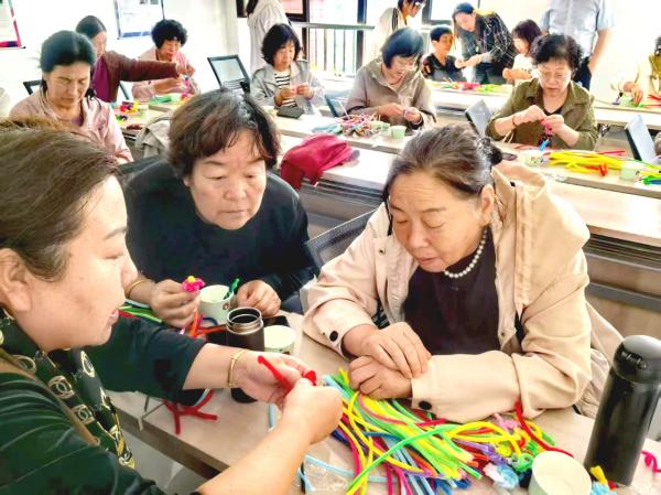 隨著時間推移,原本普通的扭扭棒在居民們的巧手下漸漸綻放成一朵朵精致小花。大家舉起作品相互拍照,活動室里歡聲笑語一片,滿是中秋節“花”好月圓的溫馨景象,提前讓居民們感受到了節日的團圓與美好。