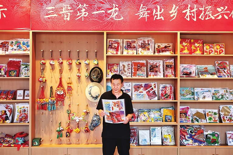 張二虎在非遺文創(chuàng)體驗(yàn)館查看衍生文創(chuàng)產(chǎn)品