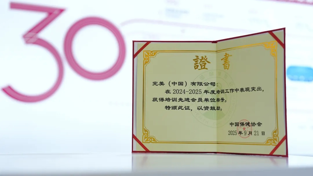 9月21日,完美公司受邀出席2025保健行業從業人員培訓高質量發展成果報告會,與行業專家一同探討培養健康行業后備力量的前沿方向,會上,完美公司和上海臻領健康科技有限公司分別榮獲“培訓先進會員單位”和“合作培訓先進單位”。