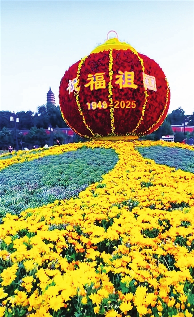 本次花卉景觀布置亮點紛呈,共計300余萬盆(株)鮮花競相綻放。尤其是迎澤大街、五一廣場、迎澤公園、雙塔公園等處,大型標語花壇、立體花壇及菊花展成為視覺焦點,不僅展現了太原市民對國家的熱愛與自豪,也彰顯了城市的文化底蘊與藝術品位。