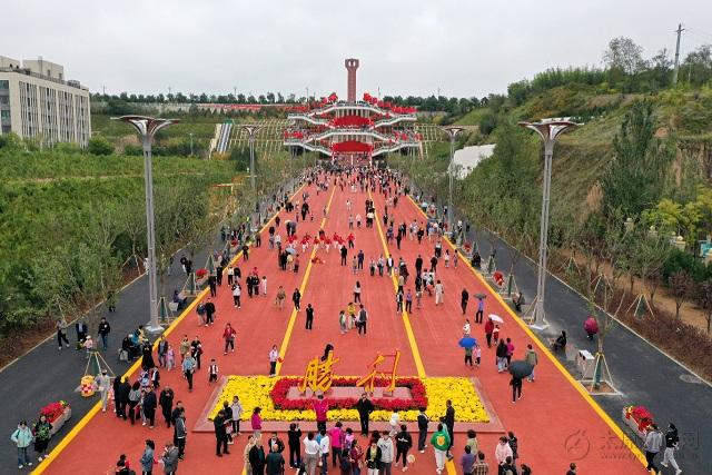 10月2日,維修改造后的勝利街“網紅橋”(天字橋),與絢麗的勝利主題花壇、飄揚的國旗、巍然屹立的太原解放紀念碑相映成景,既勾勒出莊嚴厚重的歷史感,更烘托出歡樂祥和的節日氛圍,吸引了眾多市民游客。牛利敏 攝