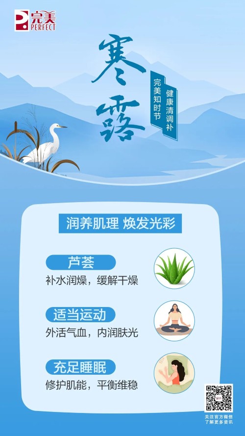 寒露已至,深秋的干燥與寒意日漸深重,肌膚容易因水分流失而顯得干燥粗糙,甚至暗淡無光。因此,寒露時節更應通過溫和的養護方式,為肌膚補足水分與營養,抵御季節變化帶來的影響。