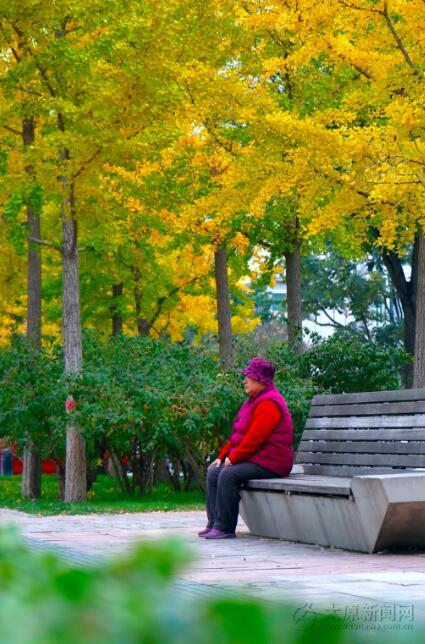 生態建設的成果,已悄然融入市民生活。和平公園的銀杏林下,祖孫笑顏與落葉同框;濱河西路仿佛被秋風揉碎的調色盤,紅黃綠交織出印象派杰作;南屯路的金葉畫框里,為民服務中心的國旗愈發鮮艷奪目;迎澤大街西段新修建的游園中,孩子的歡笑與秋天的繽紛相映成輝……