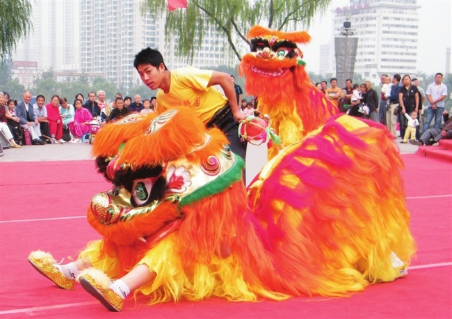 “起!轉!落!”訓練場上,28歲的郭普意正在練習“滾繡球”。他是岳成云的徒弟,現在是舞獅隊的主力。小郭抹了把汗說道,“岳師父說,獅球合一,人就是獅子,獅子就是人?!蔽魅A門舞獅建立傳習基地,迎來了發展的新契機。然而挑戰依然嚴峻。