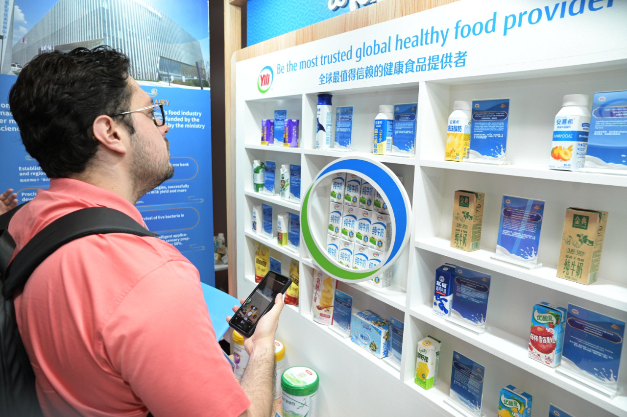 峰會現場,融合中國風與敕勒川草原特色的伊利展臺集中展示了伊利旗下液態奶、奶粉、酸奶、奶酪等明星產品,成為全球嘉賓的打卡觀摩點。伊利旗下金典、安慕希、舒化、優酸乳、金領冠、QQ星、欣活、倍暢、伊利常溫奶酪棒等明星產品吸引了全球嘉賓的目光。
