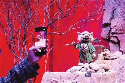 身著全套孫悟空裝扮的游客劉榮魁先生,成為全場焦點。他興奮地表示:“我是孫悟空的鐵桿粉絲,得知今天開展,特意裝扮成偶像的樣子來看展,感覺自己也成了展覽的一部分。”