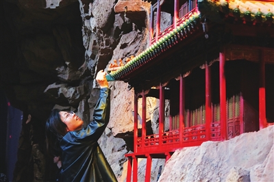 展廳內,游戲中的角色、場景與精細的古建三維模型交相輝映,游客仿佛穿越于神話與歷史之間。