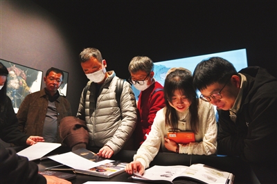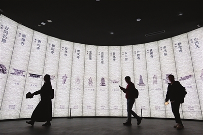 展廳內,有家長借助生動的數字模型,耐心地向孩子講解古建知識;忠實的游戲愛好者則屏息凝神,仔細端詳游戲角色的細節設定,如獲至寶。