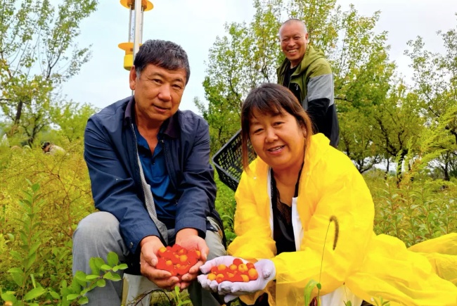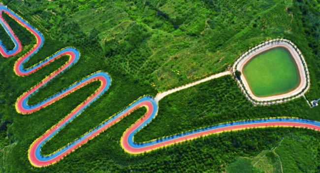 蜿蜒的自行車賽道穿過秋收的田野,飽滿的玉米與成片的鈣果,正是“金山銀山”的生動寫照。