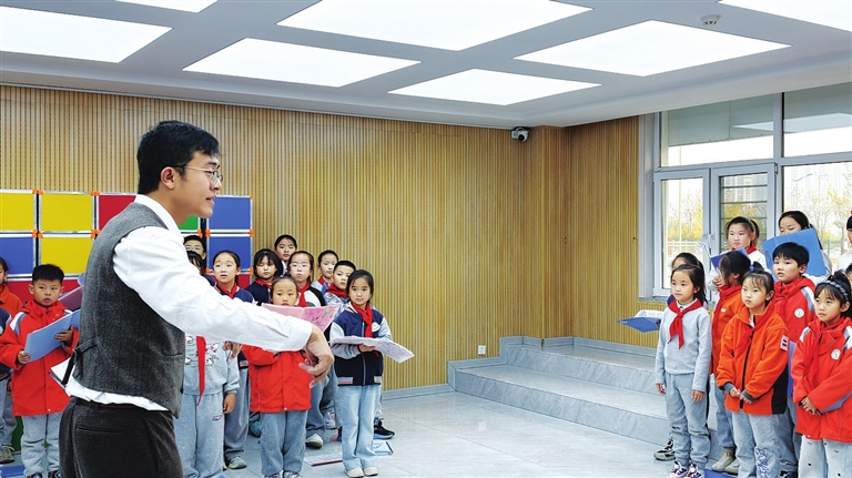 11月6日從萬柏林區玉門花園小學獲悉,山西省交響樂團首席指揮程欣奇走進該校音樂教室,對該校“朵朵”合唱團的孩子們進行專業指導,為他們種下美的種子。這也是該校美育的一種創新舉措。