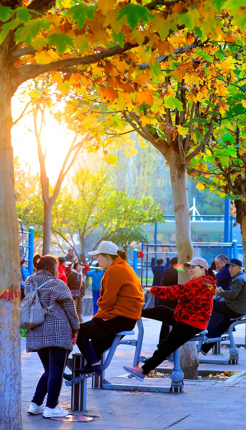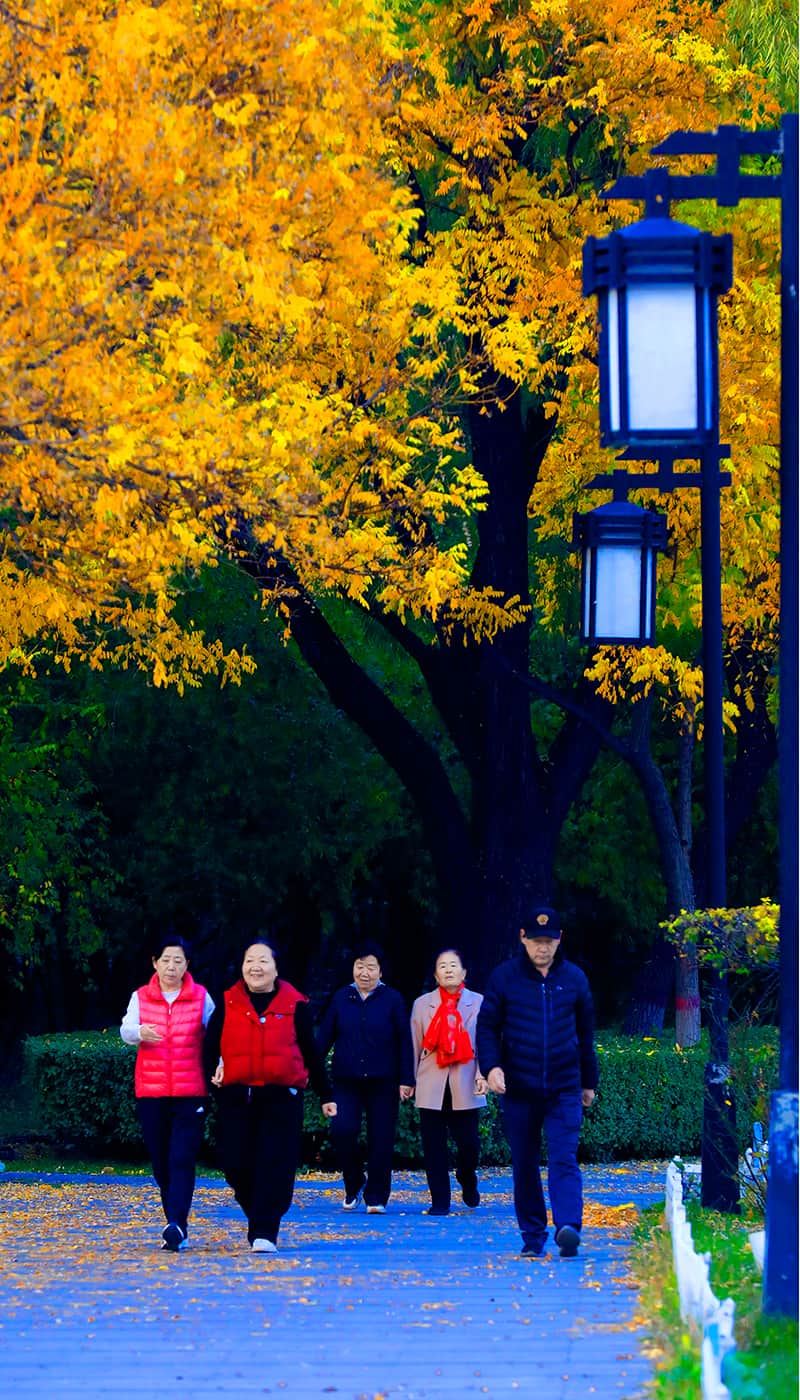 您看,音響里流淌出悠揚的旋律,五彩林蔭道上的舞者,舞步或許不再輕盈,但在漫天飛舞的落葉中,每一個轉身、每一次回旋,都寫滿了與歲月共舞的從容與優雅。秋色,是他們最華麗的舞臺背景。