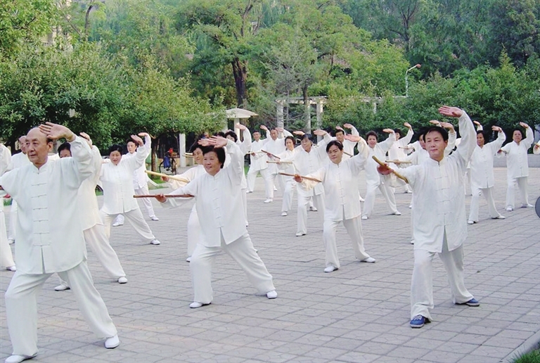 歷經(jīng)數(shù)百年的傳承發(fā)展,如今的鞭桿已不僅是一門防身技藝,而是兼具健身價(jià)值的運(yùn)動(dòng)項(xiàng)目。其同時(shí)具備長拳的功架、形意拳的力道、八卦掌的飄逸、太極拳的松柔圓轉(zhuǎn), “好看又實(shí)用”,男女老幼均可練習(xí)。此外,通過巧妙使用鞭桿器材,還可以對關(guān)節(jié)、肌肉進(jìn)行有效按摩。毛明春的學(xué)員中,有七旬老人通過練習(xí)鞭桿改善了關(guān)節(jié)疼痛狀況,有八旬老人減輕了中風(fēng)后遺癥,還有青少年借此增強(qiáng)了體質(zhì)。“練鞭桿講究身鞭合一,對協(xié)調(diào)性、靈活性的鍛煉非常全面,這是普通的健身器材替代不了的。”他說。