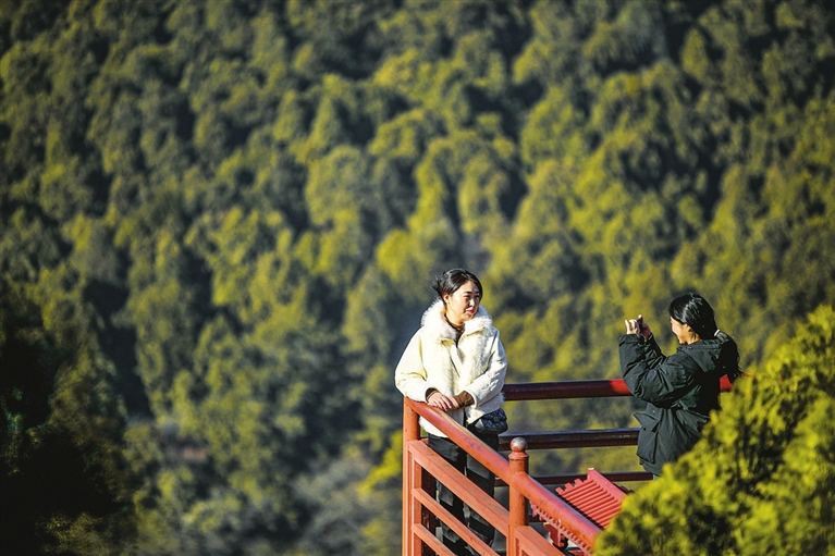 12月1日,游人在太山景區欣賞初冬美景,近距離感受自然之美。